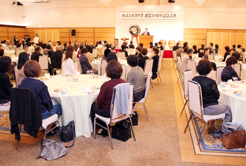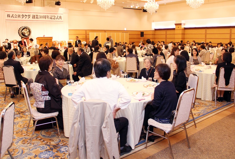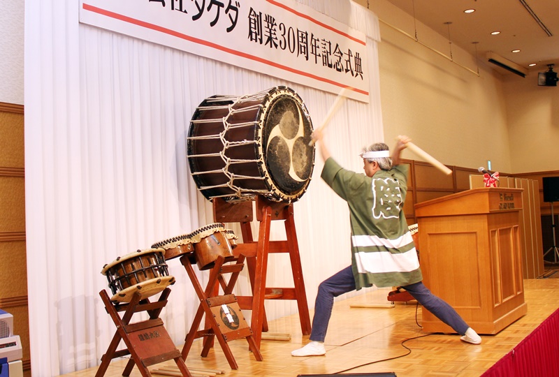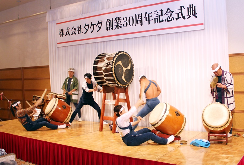 第2部として行われた株式会社タケダ創業30周年記念式典は会場を2階天翔の間に移し、名取市雷神会の呼び太鼓と共に厳かな雰囲気のなか幕開けとなりました。