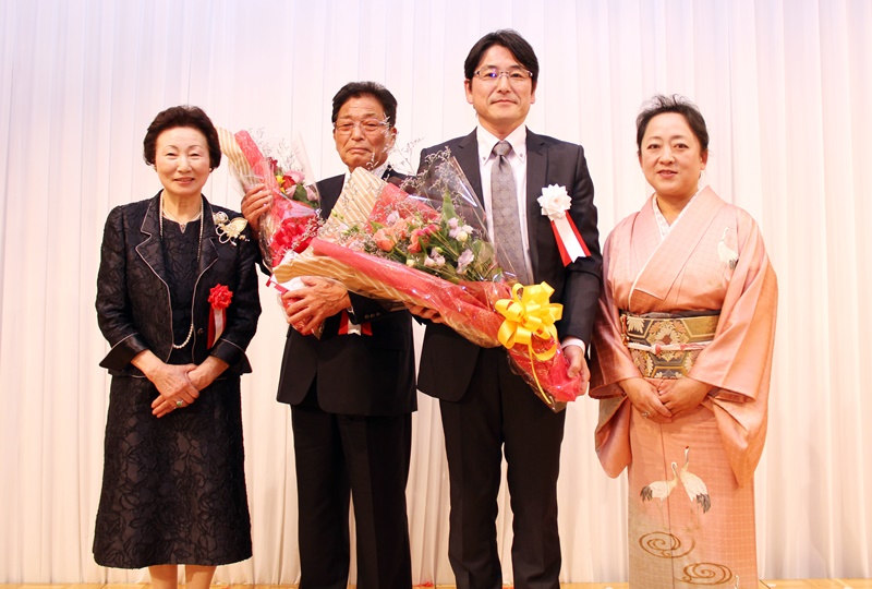 全ての催しが終了し閉会前にサプライズとして代理店・特約店から株式会社タケダ武田幸一会長、武田満社長に、株式会社タケダスタッフからニチニチ製薬株式会社安本昌吉代表取締役社長、ニチニチ製薬株式会社酒井修一取締役統括本部長、ニチニチ製薬株式会社嶋田貴志取締部長に花束が送られました。