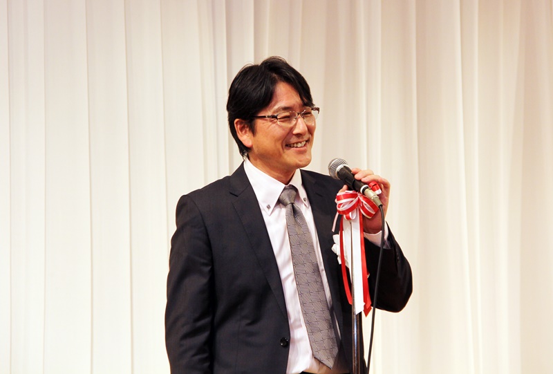 続いて、代理店・特約店の麗光堂・村田秀邦さんが乾杯の音頭。御礼の言葉を述べて祝宴に入りました。